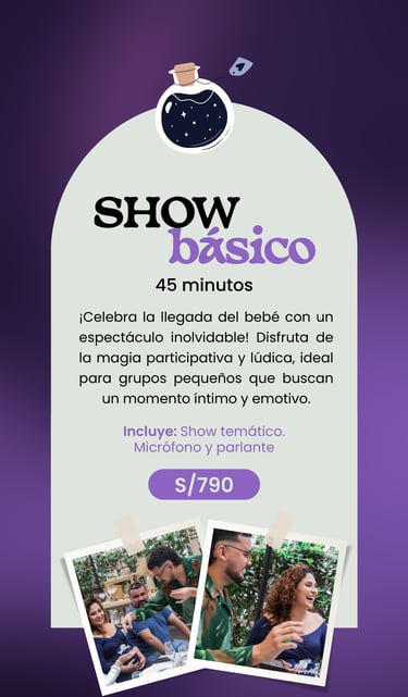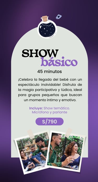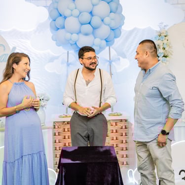 Nuestro Show Mágico de Baby Shower es un espectáculo creado para celebrar al bebé y a los padres, con momentos profundos y emotivos para todos.
